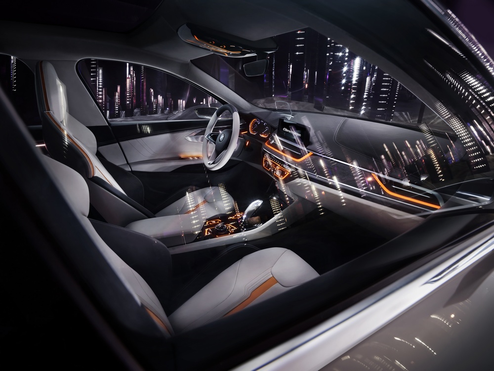 Spojrzenie do wnętrza kompaktowego sedana BMW pozwala od razu zauważyć przynależność auta do rodziny BMW. Kokpit jest wyraźnie zorientowany na kierowcę: wszystkie linie, kształty i elementy obsługi uporządkowane są według kierowcy i jego potrzeb. Widać to wyraźnie dzięki tzw. stylistyce Cone of Vision, zwężającym się w kierunku jazdy liniom wokół kierownicy, za którymi podąża cała stylistyka strefy kierowcy. Również kształt poziomych, przypominających turbiny wylotów powietrza, jak również wzór w środku nich, biegną w tym samym kierunku. „Cone of Vision” wieńczy wyświetlacz BMW Head Up Combiner wyświetlający wszystkie informacje istotne podczas jazdy w bezpośrednim polu widzenia kierowcy.